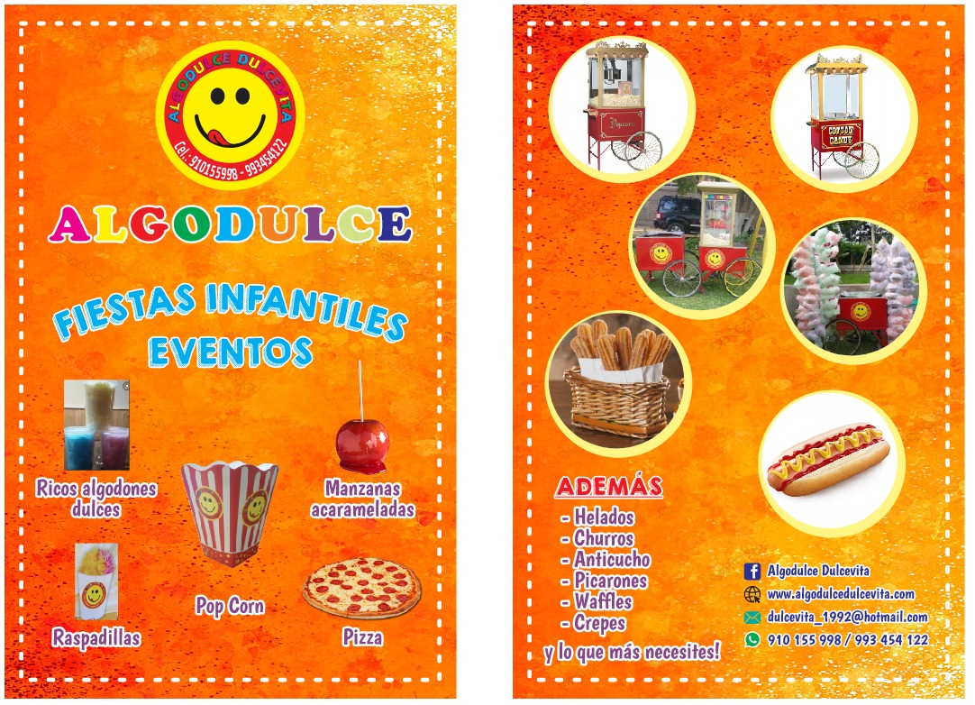 Te ofrecemos deliciosos productos en vistosos carritos con personal uniformado para fiestas infantiles, kermesses, clubes, eventos corporativos, campañas publicitarias, etc.